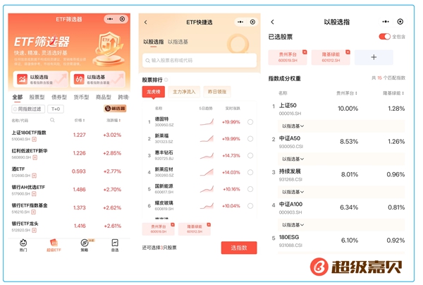“超级嘉贝”定位为“智能指数投资平台”,架构清晰且功能聚焦,核心涵盖四大模块:热点资讯与板块追踪、股基双向联动工具、全市场ETF数据库、策略中心。其设计以“全流程服务投资者”为核心思路,通过数据高效整合、场景化工具开发与专业策略输出,构建起从“信息获取”到“标的筛选”,再到“策略执行”的完整服务闭环,为用户提供一站式指数投资解决方案。