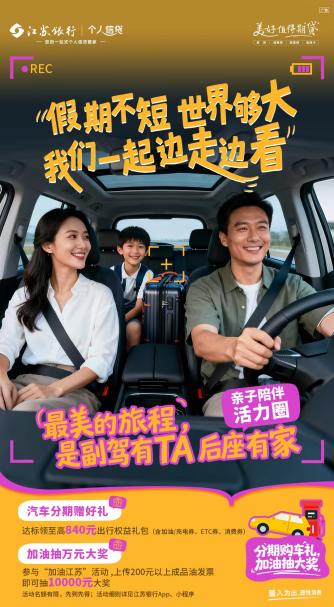 风清气爽,秋意渐浓,国庆中秋“双节”带动消费市场迎来传统旺季。江苏银行助消费火力不减,聚焦消费者多元需求,围绕出行、汽车、文旅等重点消费领域,以系列金融支持举措点燃消费市场,精准承接政策红利、挖掘消费潜力,不仅为民众日常消费带来实惠,也为地方消费市场升温注入源源不断金融动能。