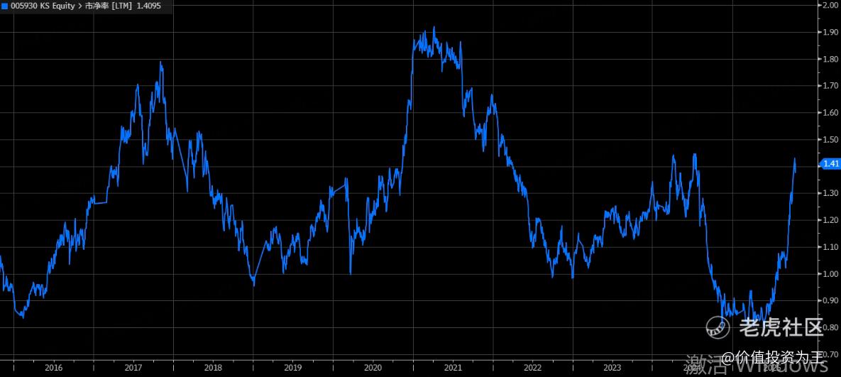 从估值上看,三星市净率还不算贵,还有可观的上升空间: