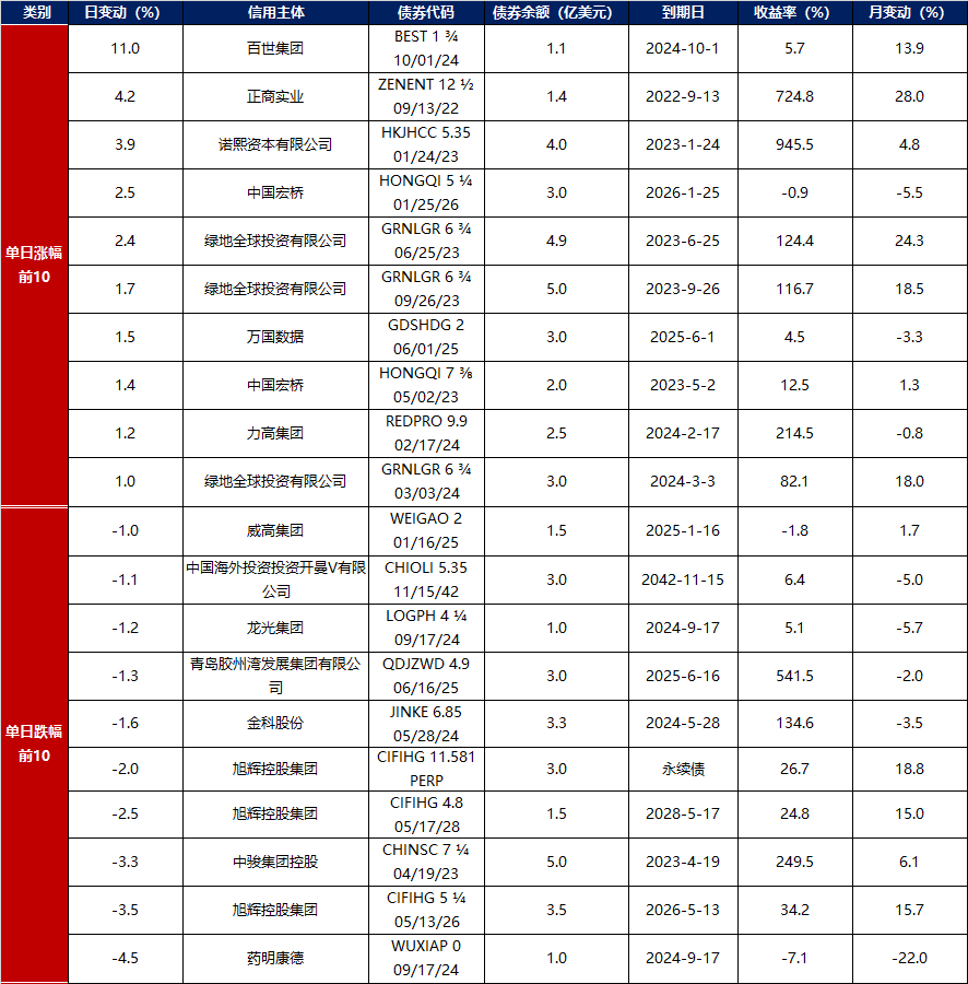 3.中资美元债每日价格变动(截至10月14日收盘)