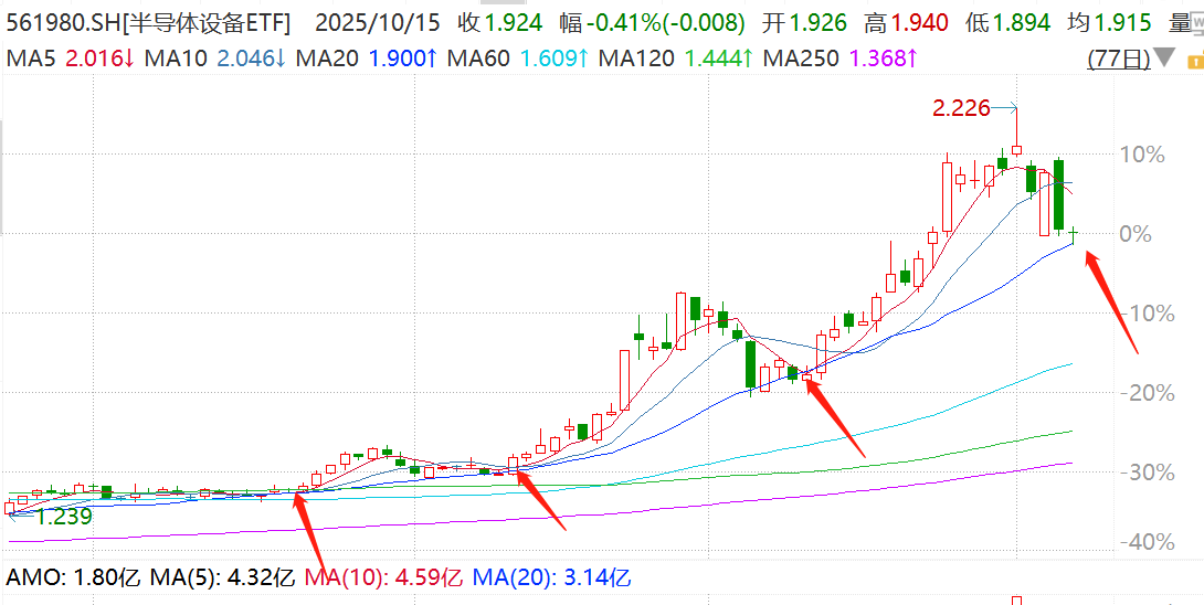 这几天,半导体设备板块一直在调整。半导体设备ETF(561980)再度回落至20日均线,从今年6月以来的这波主升浪,几次回调都以此为支撑。如果半导体行情还没结束,那么目前反而是很好的上车机会。