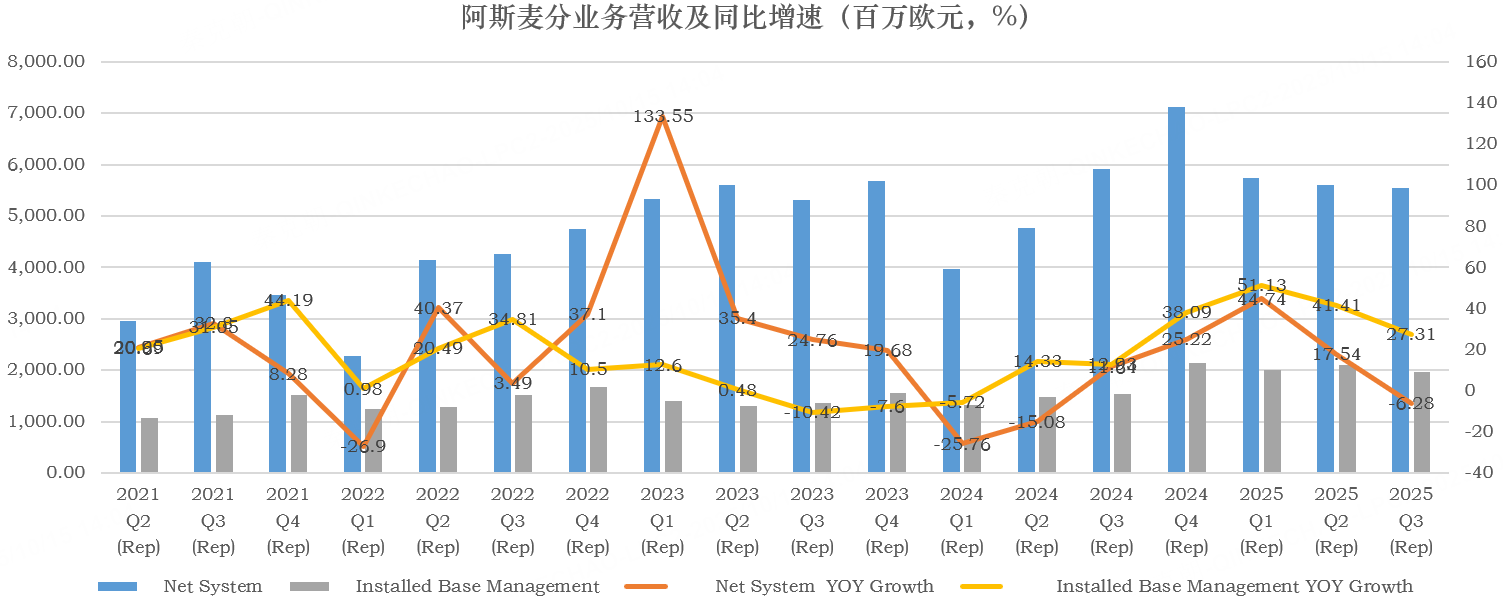 在三季报上,阿斯麦预计2026年营收将不低于2025年,较上一季不确定能否增长明显乐观。