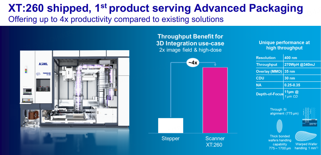 除了AI趋势带来的增量外,阿斯麦还将从先进封装趋势中获益,本季度,阿斯麦首款先进封装光刻机产品已经发货,性能提升还是很明显的: