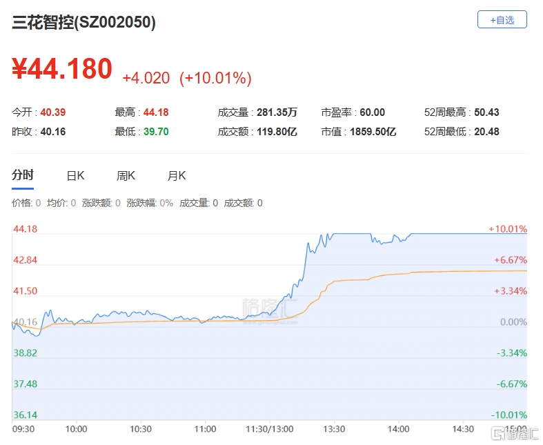 三花智控:今日涨停,换手率7.64%,成交额119.80亿元。龙虎榜中,机构净卖出1.22亿元,深股通专用席位净卖出4055.50万元,游资章盟主净买入6.82亿元。