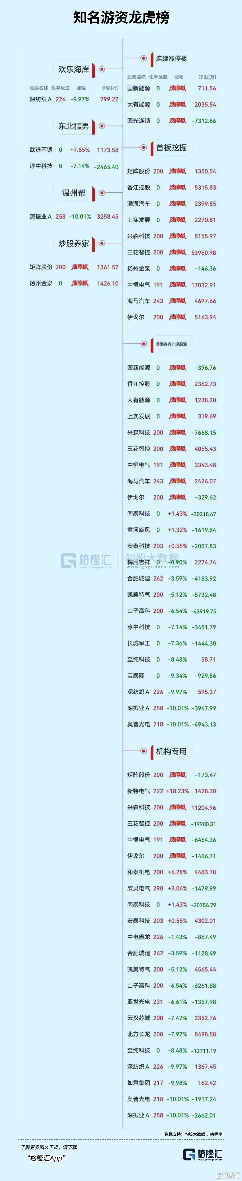 龙虎榜中涉及机构专用席位的个股中,当日净卖出额前三为闻泰科技、至纯科技、三花智控,分别为2.08亿元、1.27亿元、1.22亿元。