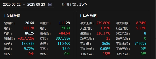 但是这依旧没有浇灭天普股份的炒作氛围,天普股份继续一字涨停,从8月22日至9月23日,天普股份从26.64元/股一路涨至111.28元/股,短短15个交易日大涨超过317%。9月23日盘后,走出15连板的天普股份再次被停牌核查,在一个月内上演“三进宫”,这在A股过往监管过程中十分罕见。如今在被停牌10个交易日后,天普股份迎来第四次复牌。