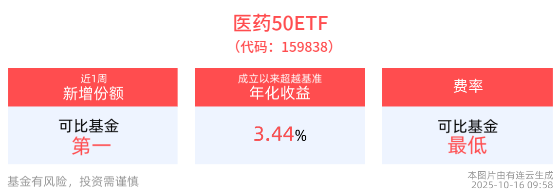 医药50ETF(159838):跟踪中证医药50指数,一键覆盖A股医药生物核心50强,兼顾创新药、医疗服务与器械全产业链。