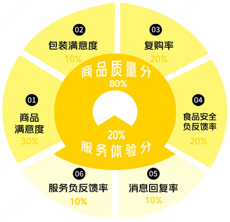 新评价体系迭代后,虽然提供了商品、包装、复购率、消息回复率、服务负反馈率等更多维度,但在消费者核心关注的食品安全维度上,信息呈现还比较欠缺。7月,在此前试点基础上,新评价体系又引入“食品安全负反馈率”指标,将“食品安全”这一隐形要素显性化、公开化。