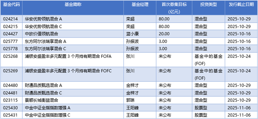 三、10月16日新发基金一览(不包含传统封闭式基金)