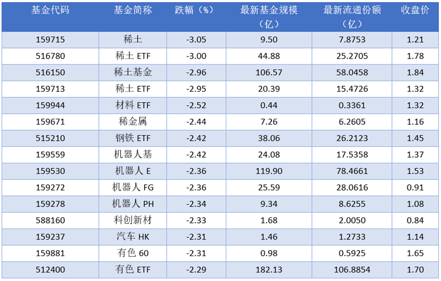 下跌方面,2025年10月16日跌幅最大的是稀土(159715),跌幅达到3.05%。排名靠前的稀土ETF (516780)、稀土基金(516150)、稀土ETF(159713),跌幅分别为3.00%、2.96%、2.95%。