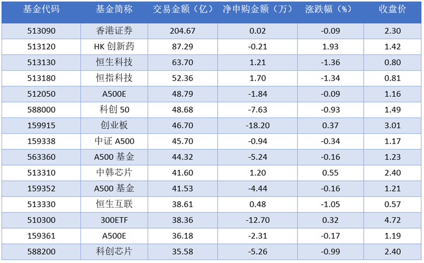 从成交金额上来看,2025年10月16日成交额最大的是香港证券(513090),交易金额204.67亿元。排名靠前的HK创新药(513120)、恒生科技(513130)、恒指科技(513180),成交额分别为87.29亿元、63.70亿元、52.36亿元。