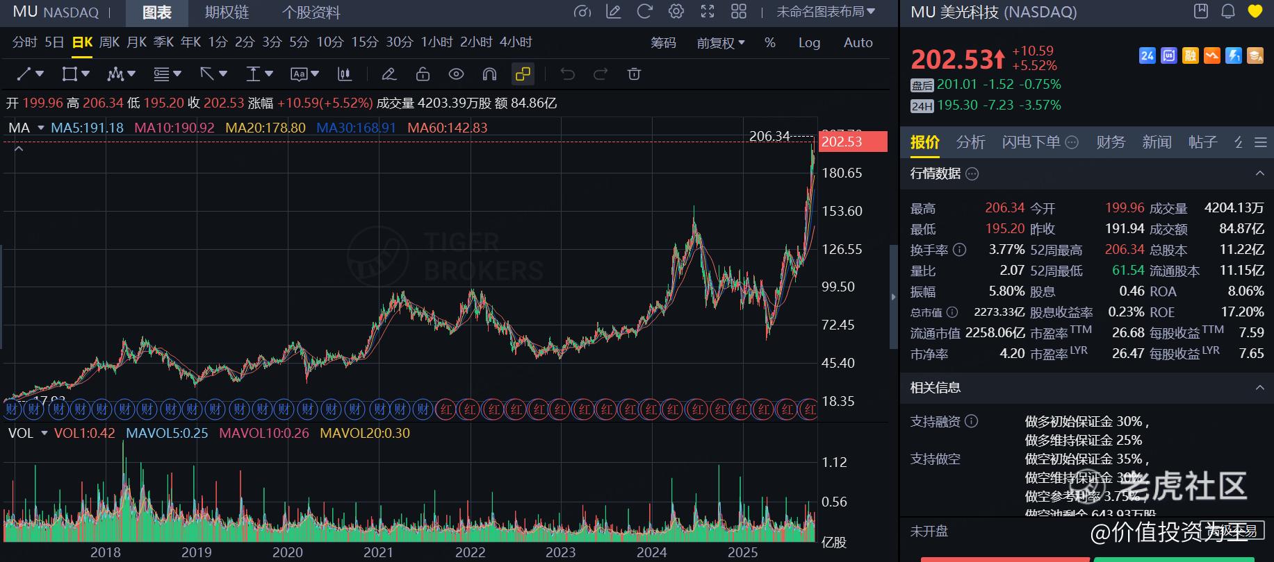 昨夜,存储巨头美光大涨5.5%,创历史新高: $美光科技(MU)$