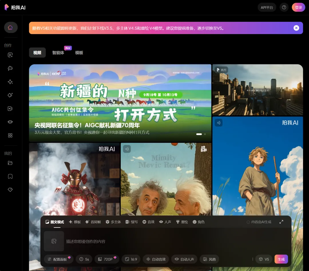 截至8月31日,PixVerse(拍我AI)开放平台在过去半年里通过API生成的视频数量突破1000万个。 随着V5大模型、Agent智能体以及多主体生成等能力的更新,八月单月API调用量即实现翻倍,助力合作伙伴更轻松地创建叙事驱动的视频内容。