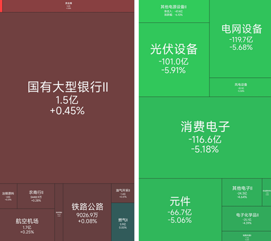 10月17日A股三大指数集体下跌,截至收盘,沪指跌1.95%,报3839.76点,深成指跌3.04%,报12688.94点,创业板指跌3.36%,报2935.37点。从板块行情上来看,今日表现较好的是贵金属、航空机场、燃气II,国有大型银行II、而光伏设备、电网设备和消费电子等板块块下跌。
