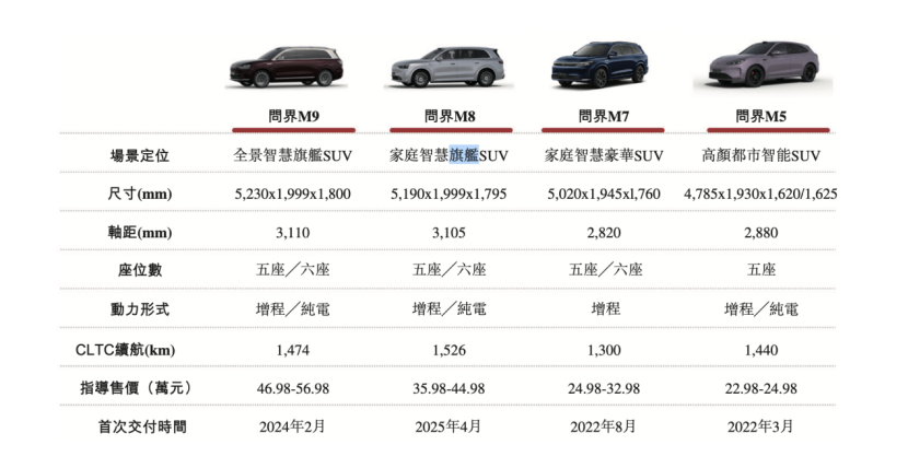 随后问界M5、M7、M9、M8四款车型相继上市,价格区间为25万至60万元,覆盖不同细分市场,构建起高端产品体系。
