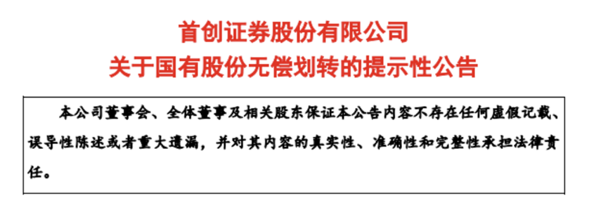 10月15日,首创证券发布公告称,北京首都创业集团有限公司(以下简称首创集团)拟通过国有股份无偿划转方式将其持有的首创证券3.56%股权划转给北京市基础设施投资有限公司(以下简称京投公司)。首创证券称,划转完成后,京投公司将进一步加强对公司的业务支持,推动公司业务发展。