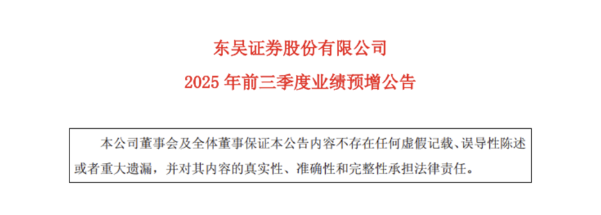 10月14日,东吴证券发布2025年前三季度业绩预增公告,预计2025年前三季度实现归属于母公司所有者的净利润27.48亿元至30.23亿元,同比增加50%至65%。公司称,财富管理、投资交易等多项业务收入同比增长,成为推动经营业绩持续提升的重要引擎。据财联社报道,本次东吴证券业绩预增,不仅显示出其强劲的增长势头,其净利润规模也已超越2024年全年23.66亿元的水平。经测算,第三季度,东吴证券预计实现归母净利8.17亿元至10.91亿元,同比增22.54%至63.81%,环比增速在降14.52%至增14.6%之间。若以第三季归母净利中值即9.54亿元来看,同比增速为43.2%,季度环比增速为0.21%。