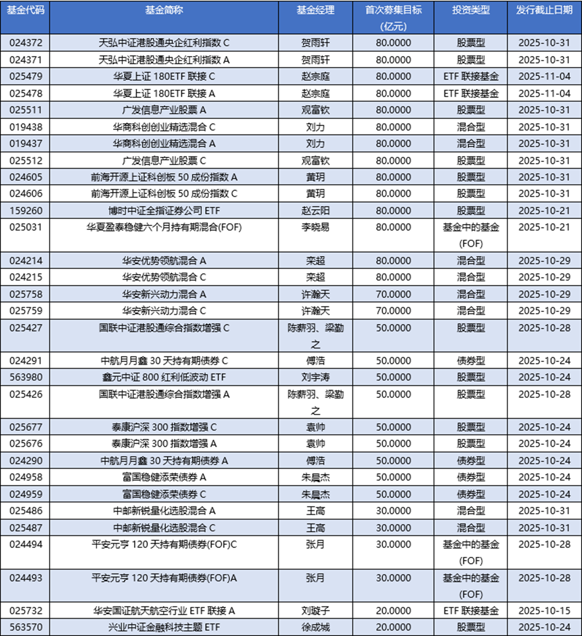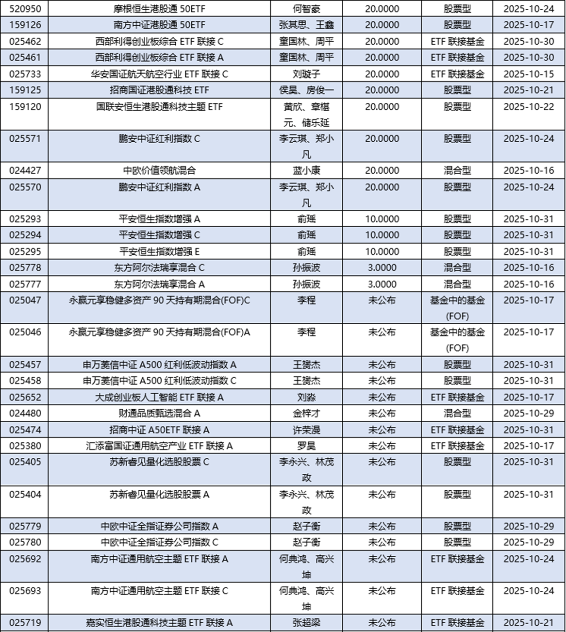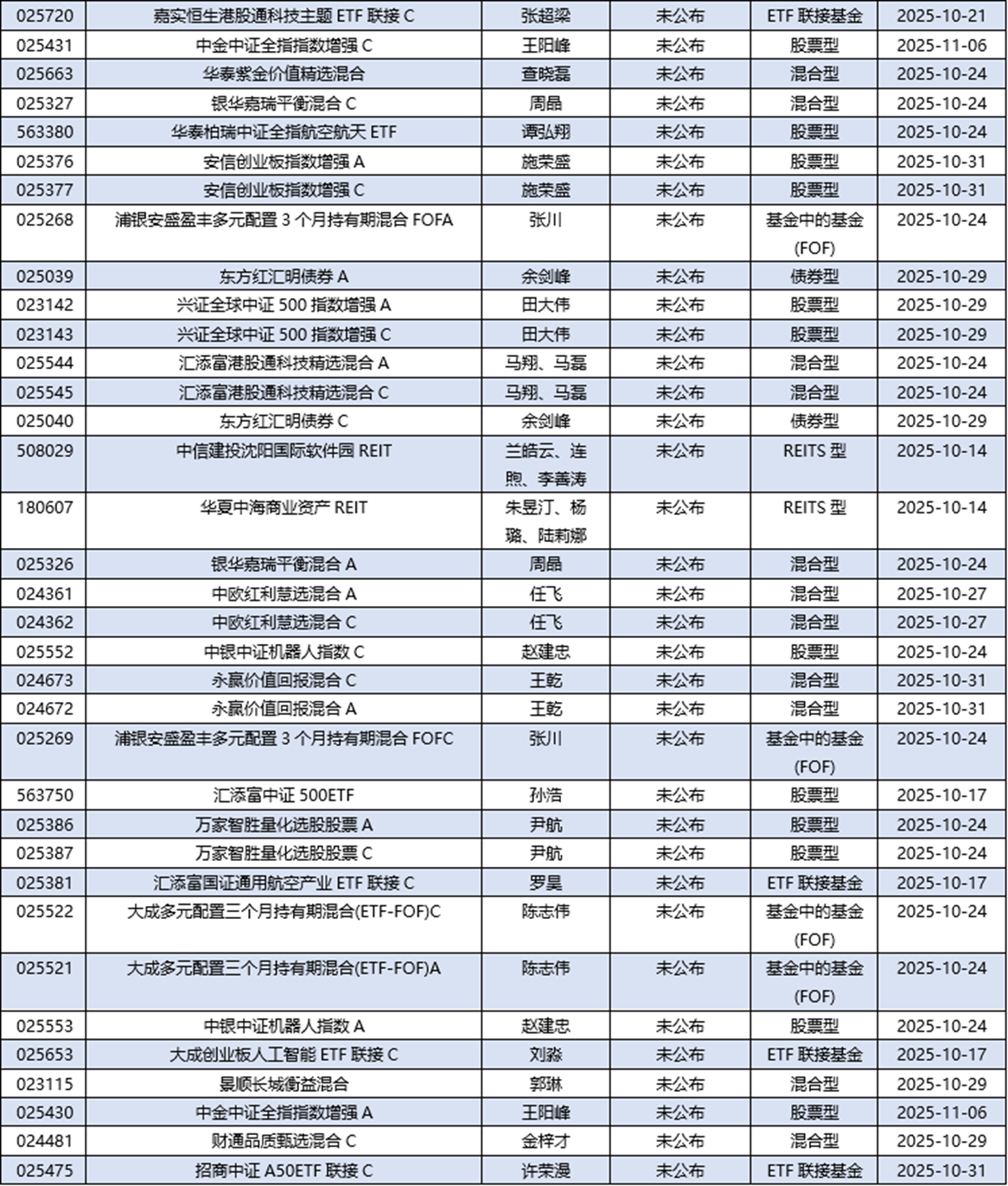 五、 上周(10.13-10.17)新发基金一览(不包含传统封闭式基金)