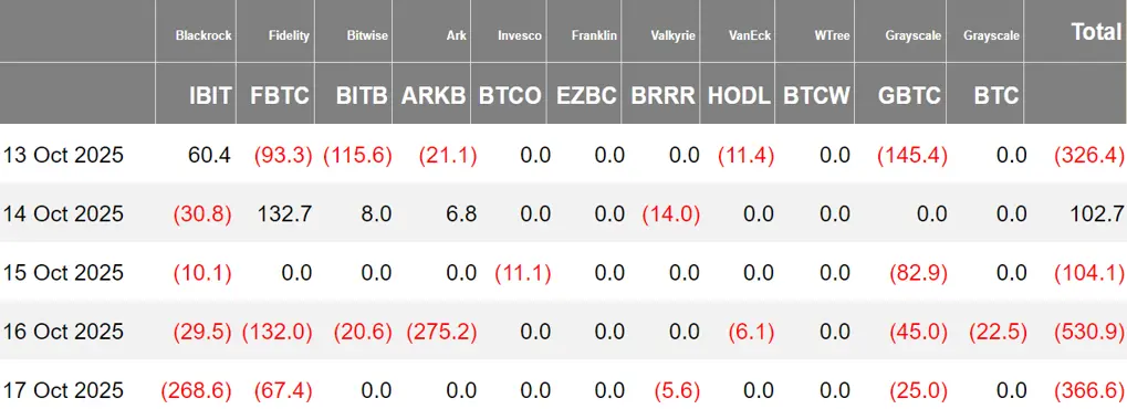 上周,美国比特币现货 ETF 四日净流出,总净流出 12.25 亿美元,总资产净值达 1439.3 亿美元。