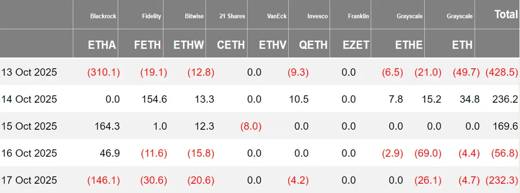 上周流出主要来自贝莱德 ETHA,净流出 2.45 亿美元。7 只以太坊现货 ETF 处于净流出状态。