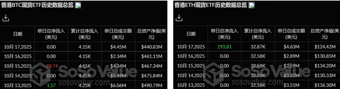 香港以太坊现货 ETF 净流入 293.81 枚以太坊,资产净值为 1.24 亿美元。