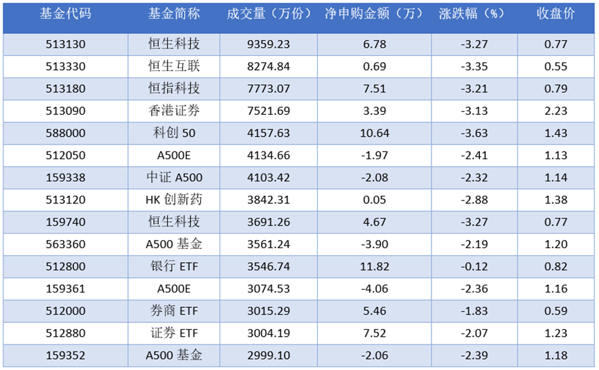 从成交量上来看,2025年10月17日成交量最大的是恒生科技(513130),成交量为9359.23万份。排名靠前的恒生互联(513330)、恒指科技(513180)、香港证券(513090),成交量分别为8274.84万份、7773.07万份、7521.69万份。