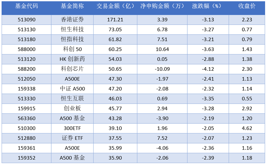 从成交金额上来看,2025年10月17日成交额最大的是香港证券(513090),交易金额171.21亿元。排名靠前的恒生科技(513130)、恒指科技(513180)、科创50 (588000),成交额分别为73.05亿元、61.82亿元、60.25亿元。