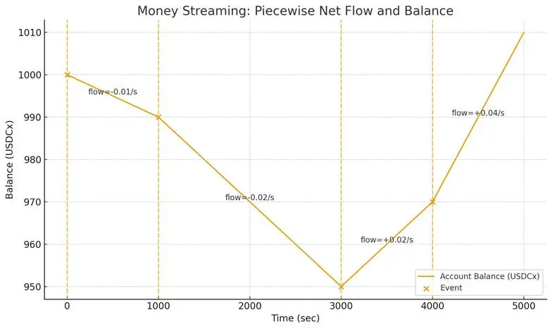 资金流是一种过程:代币以预设的“每秒速率”持续地从发送方转移到接收方,形成一条“流(stream)”。