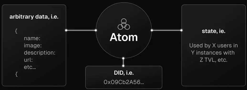 描述某个原子所代表的概念或实体。通常存储在链下(off-chain),使用去中心化存储解决方案,例如 IPFS或 Arweave,并在链上记录一个指向该数据的 URI。