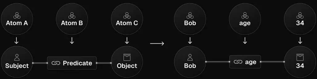 原子是 Intuition中最基本的知识单元,它们作为独特的、全球持久的、去中心化的标识符,适用于所有事物——人、概念、产品等。每一个原子都可以作为更复杂数据结构的构建模块,并促进信息在知识图谱中的确定性与语义化组织。