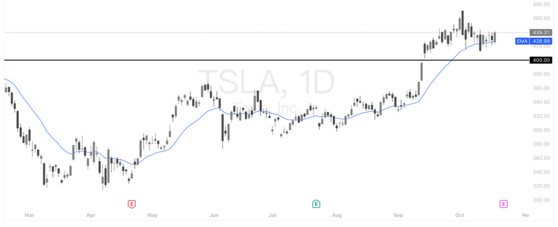 技术面上,TSLA 股价在 400 美元上方进入整理区间。若高位放量突破 400 美元区间上沿,将强化多头趋势判断;若跌破 400 美元,则需重新审视市场动能。整体判断为:短期由财报事件主导,中长期基本面承压。