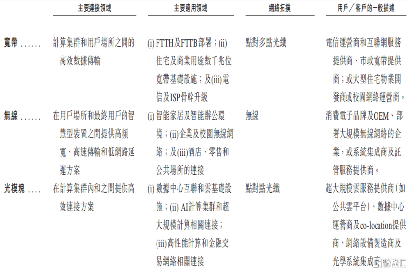 根据弗若斯特沙利文的资料,全球OWCD市场包含一整套对光通信和无线网络行业至关重要的设备,其中包括光模块、有线宽带接入设备及无线网络接入设备。