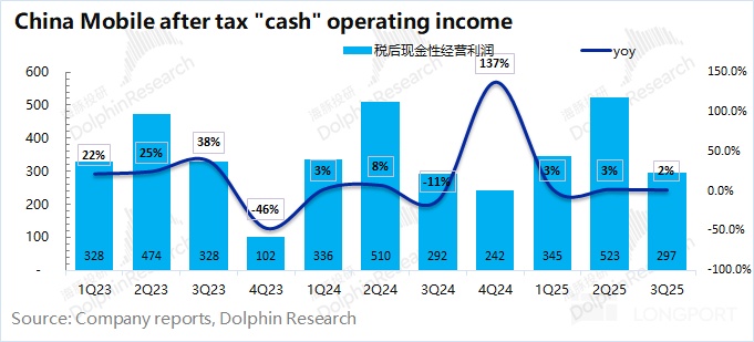 由于公司的折旧摊销高于资本开支,从现金流的角度看,公司本季度的税后现金性经营利润为 297 亿元(不考虑非经营因素影响),同比也有 5 亿元的提升。