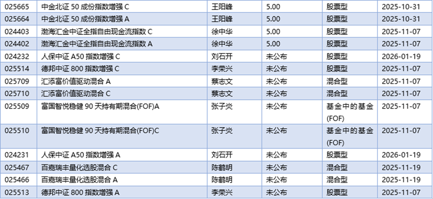 三、10月20日新发基金一览(不包含传统封闭式基金)