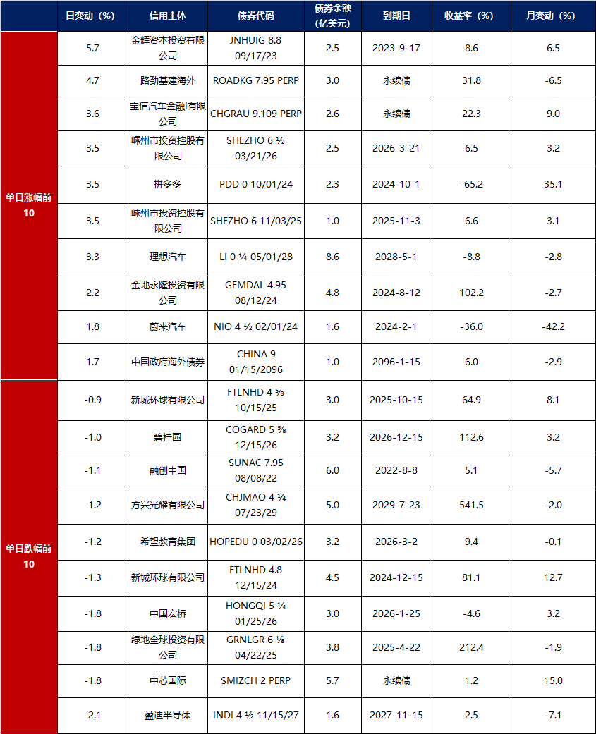 3.中资美元债每日价格变动(截至10月20日收盘)