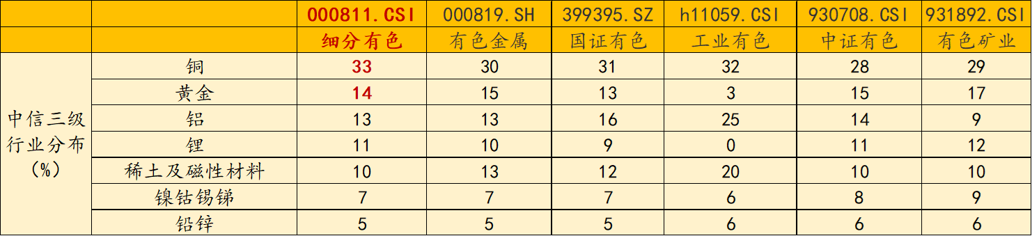 风险提示:基金有风险,投资需谨慎。投资人应当阅读《基金合同》《招募说明书》《产品资料概要》等法律文件,了解基金的风险收益特征,特别是特有风险,并根据自身投资目的、投资经验、资产状况等判断是否和自身风险承受能力相适应。基金管理人承诺以诚实信用、谨慎尽责的原则管理和运用基金资产,但不保证基金一定盈利或本金不受损失。以上基金属于中等风险等级(R3)产品,适合经客户风险承受等级测评后结果为平衡型(C3)及以上的投资者。请投资者关注指数化投资的风险以及集中投资于细分有色指数成分股的持有风险,请关注部分指数成分股权重较大、集中度较高的风险,请关注指数化投资的风险、ETF运作风险、投资特定品种的特有风险等。文中提及个股仅为指数成份股客观展示列举,本文出现信息只作为参考,投资人须对任何自主决定的投资行为负责。本文中的任何观点、分析及预测不构成对阅读者任何形式的投资建议。