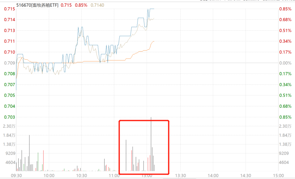 10月21日下午,畜牧养殖ETF(516670)快速拉升,同时成交量明显放大。
