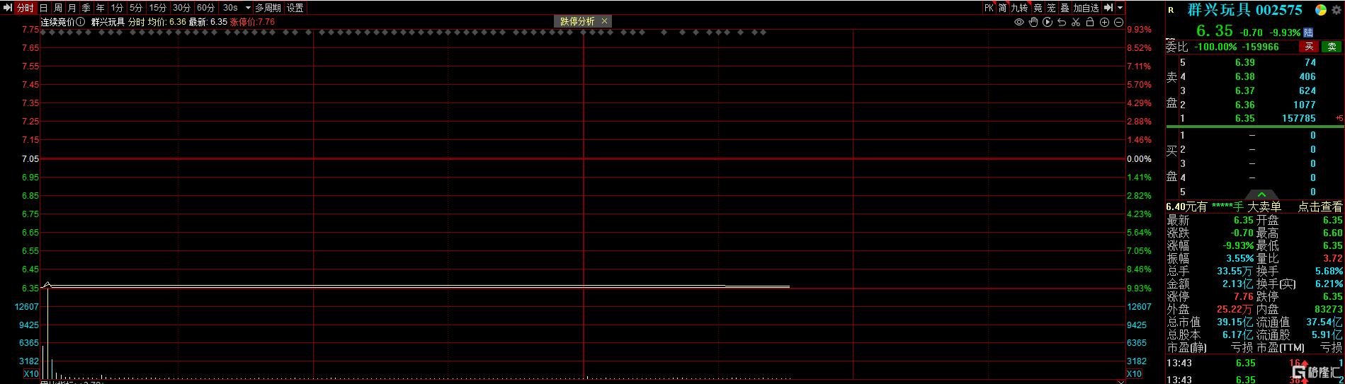 今日开盘,群兴玩具遭资金疯狂卖出,截止发稿,15.7万手、近1亿资金封死跌停,股价报6.35元/股。自2月披露重组计划以来,公司股价先扬后抑,基本回吐全部涨幅。近8个月,公司股价累计跌超44%。