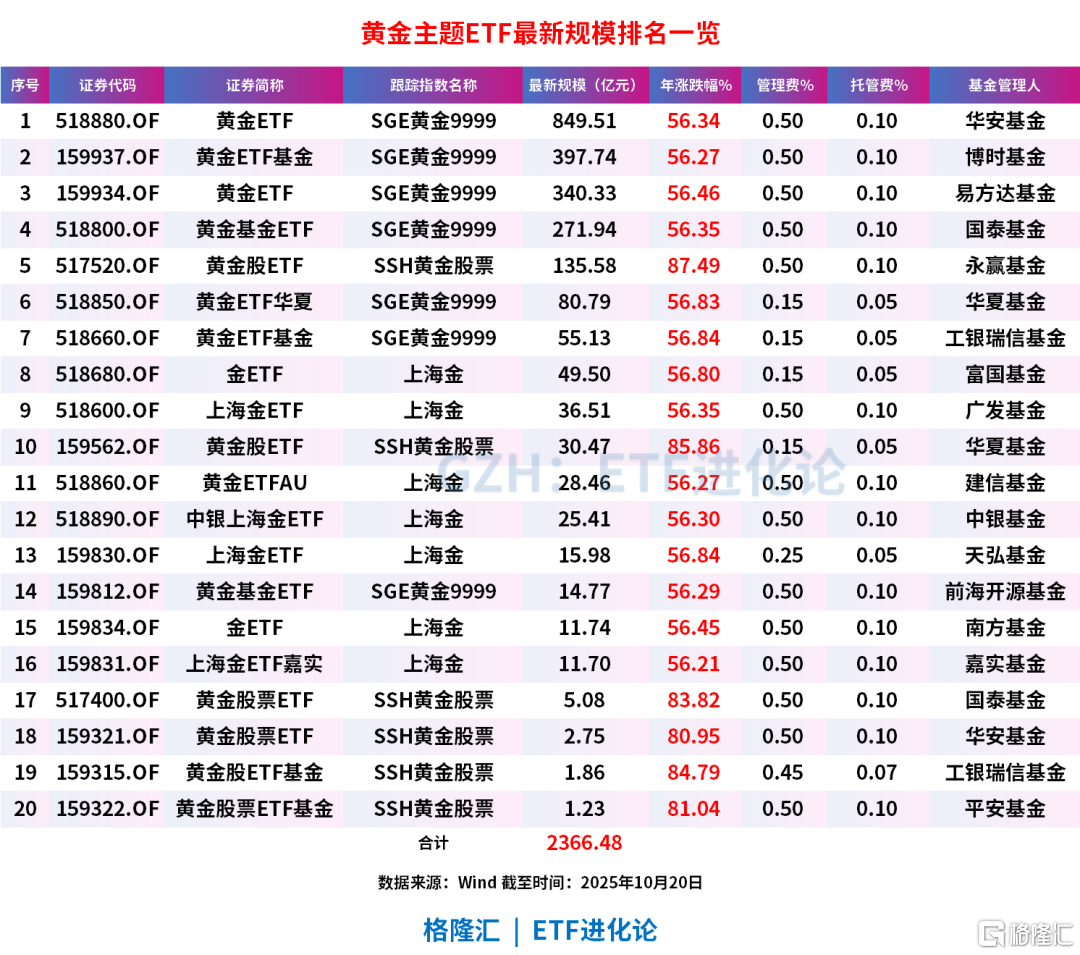 其中,规模前三的是华安黄金ETF、博时黄金ETF基金和易方达黄金ETF。