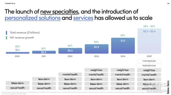 更年期与睾酮类产品原计划于2025年下半年上市,也是该公司2025年23.5亿美元营收目标的组成部分。自2023年推出减重产品后,Hims & Hers Health便未再新增产品品类。
