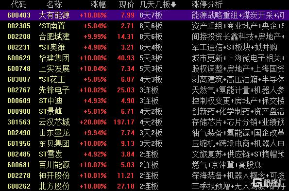 焦点股方面,大有能源晋级6连板。部分高位股获资金抱团强者恒强,合肥城建12天7板、华建集团13天7板。此外,燃气叠加芯片概念的先锋电子走出3连板。