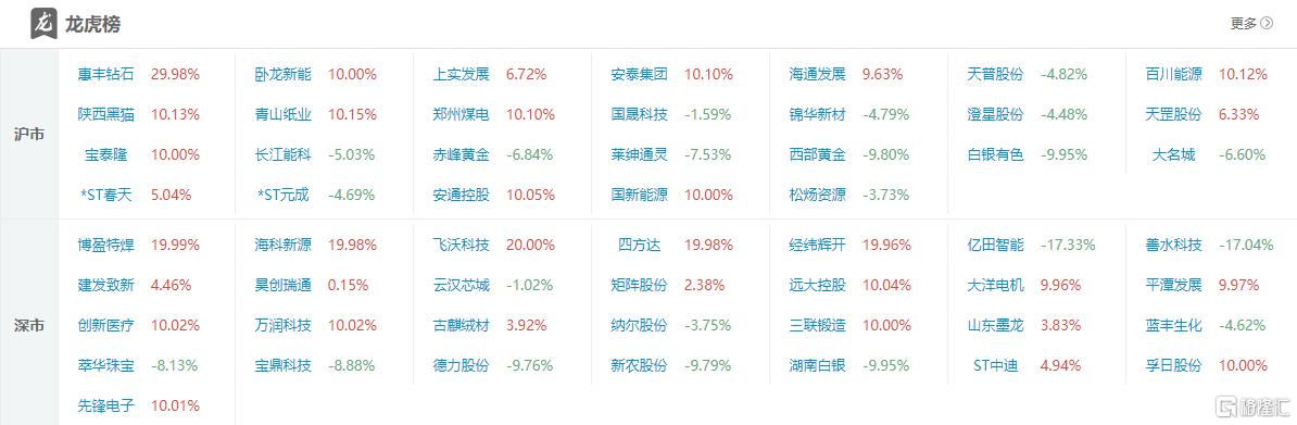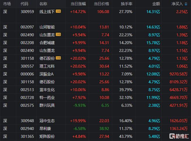 摘要:龙虎榜单日净买入额前三为山河智能、合肥城建、山东墨龙