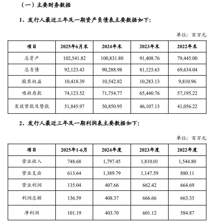 截至2025年6月末,该行实现营业收入7.49亿元,较上年同期的8.65亿元同比下降约12.29%;净利润表现更为承压,2025年上半年,该行实现净利润1.01亿元,相较于上年同期的1.41亿元,同比降幅达到28.37%。