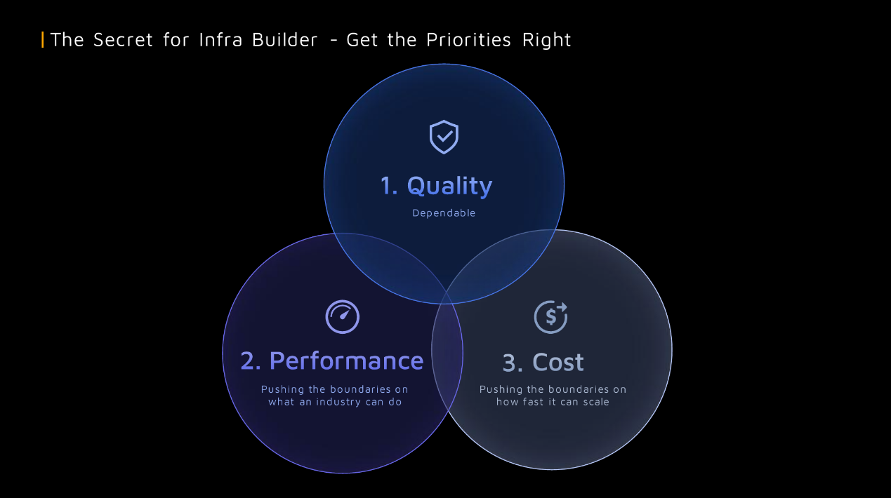 李一帆给出了禾赛在产品质量、性能、成本的“不可能三角”的解题顺序,先质量,再性能,后成本。李一帆表示,“作为基础设施,高质量是行业应用的前提,而高性能决定赋能行业的边界,低成本决定行业普及程度。”而禾赛通过芯片化自研并优化设计,将激光雷达降本99.5%,作为行业高质量、高性能的核心空间感知硬件“基础设施”,来低成本解决汽车的智能和安全核心问题。