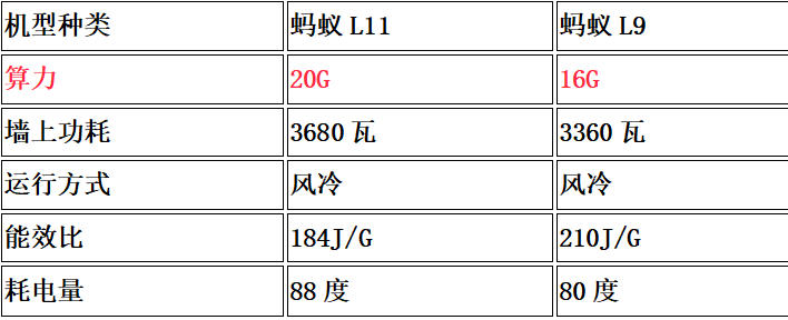 功耗仅 3680W,和蚂蚁 L9 相比只多 300W,电费成本几乎没差别,同等电费下能多赚 25%。
