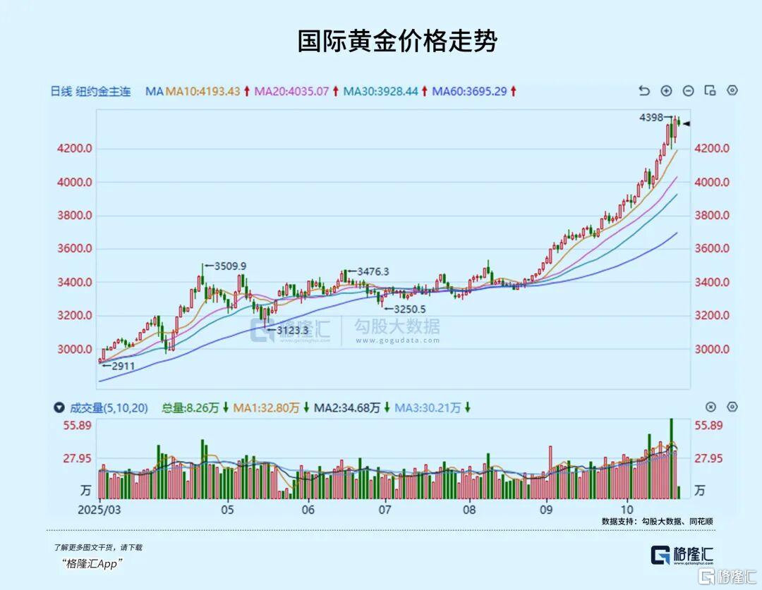 在昨晚,国际黄金主力期货价格大涨3.82%收报4398美元/盎司,离下一个整数大关仅一步之遥。