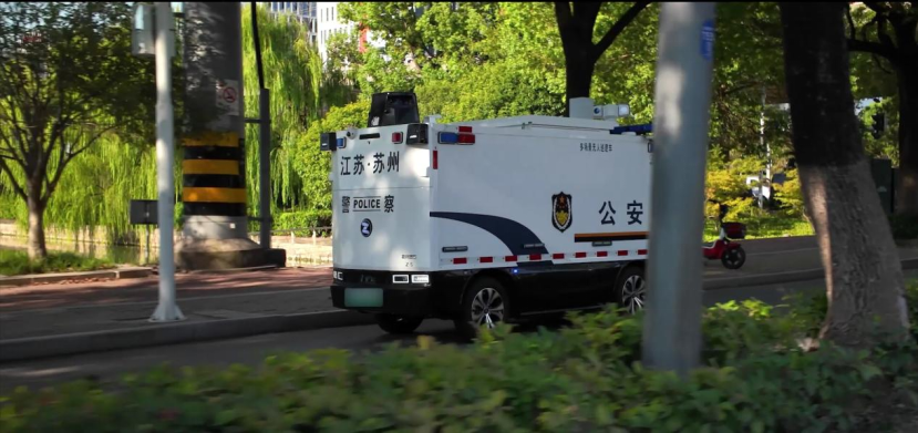基于九识 2024 款的 Z5 改装的安防巡逻车型正在进行无人机巡逻作业