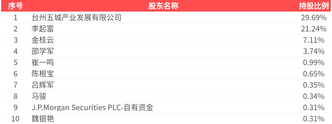 公司股东户数为2.28万户,前十大股东持股数量为1.75亿股,占总股本比例为64.73%,前十大股东持股情况如下: