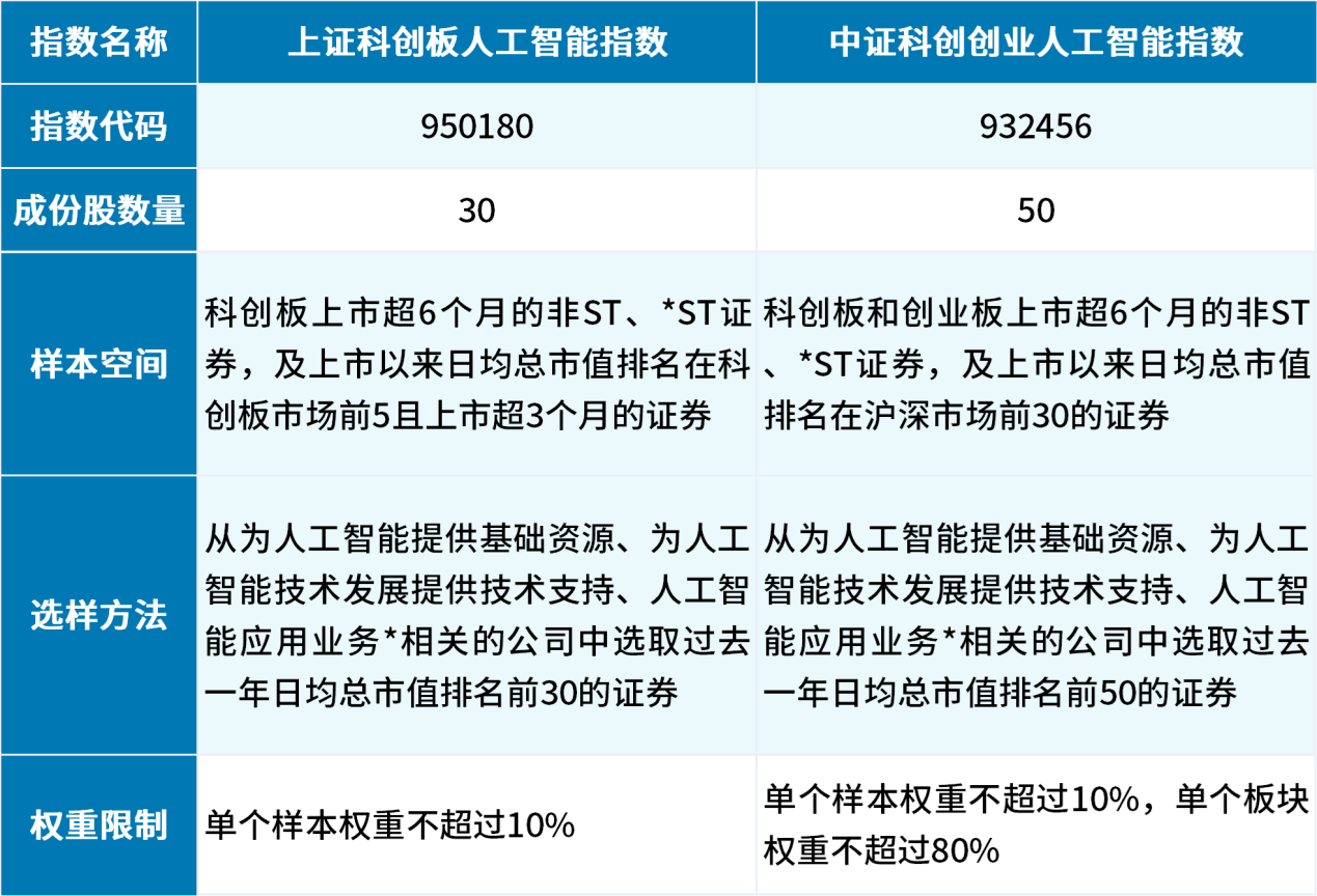 上证科创板人工智能指数、创业板人工智能指数编制规则对比