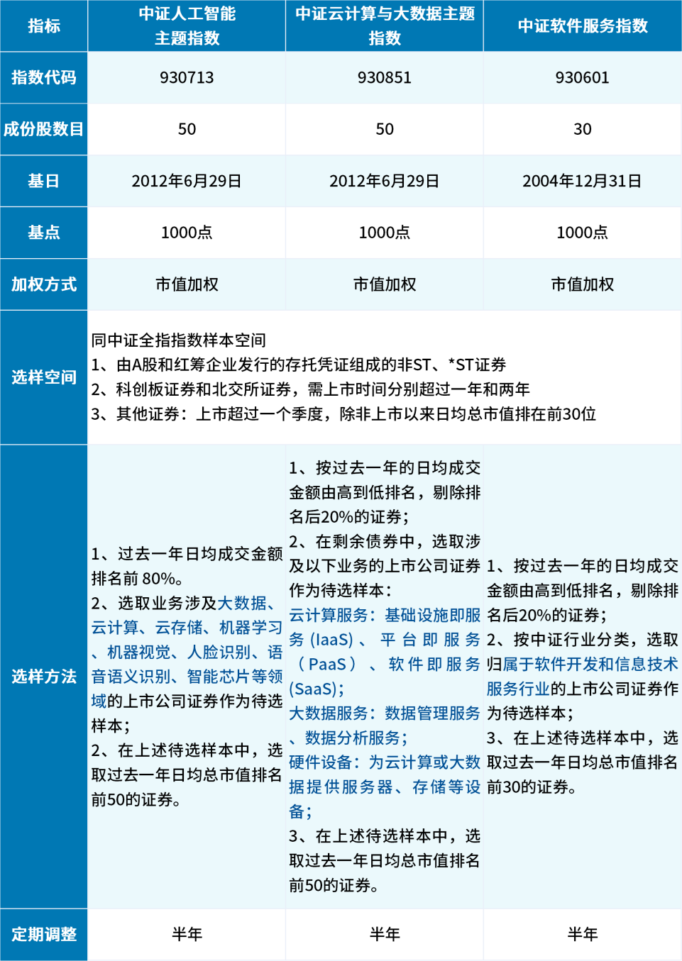 表1:三只指数编制规则